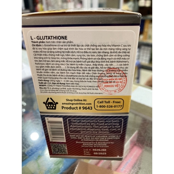 L-Glutathione 1600mg viên uống giúp trắng da, mờ nám , mờ tàn nhang