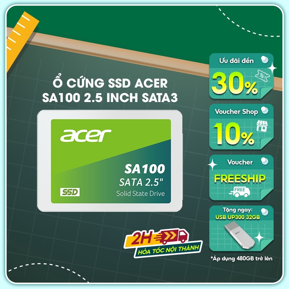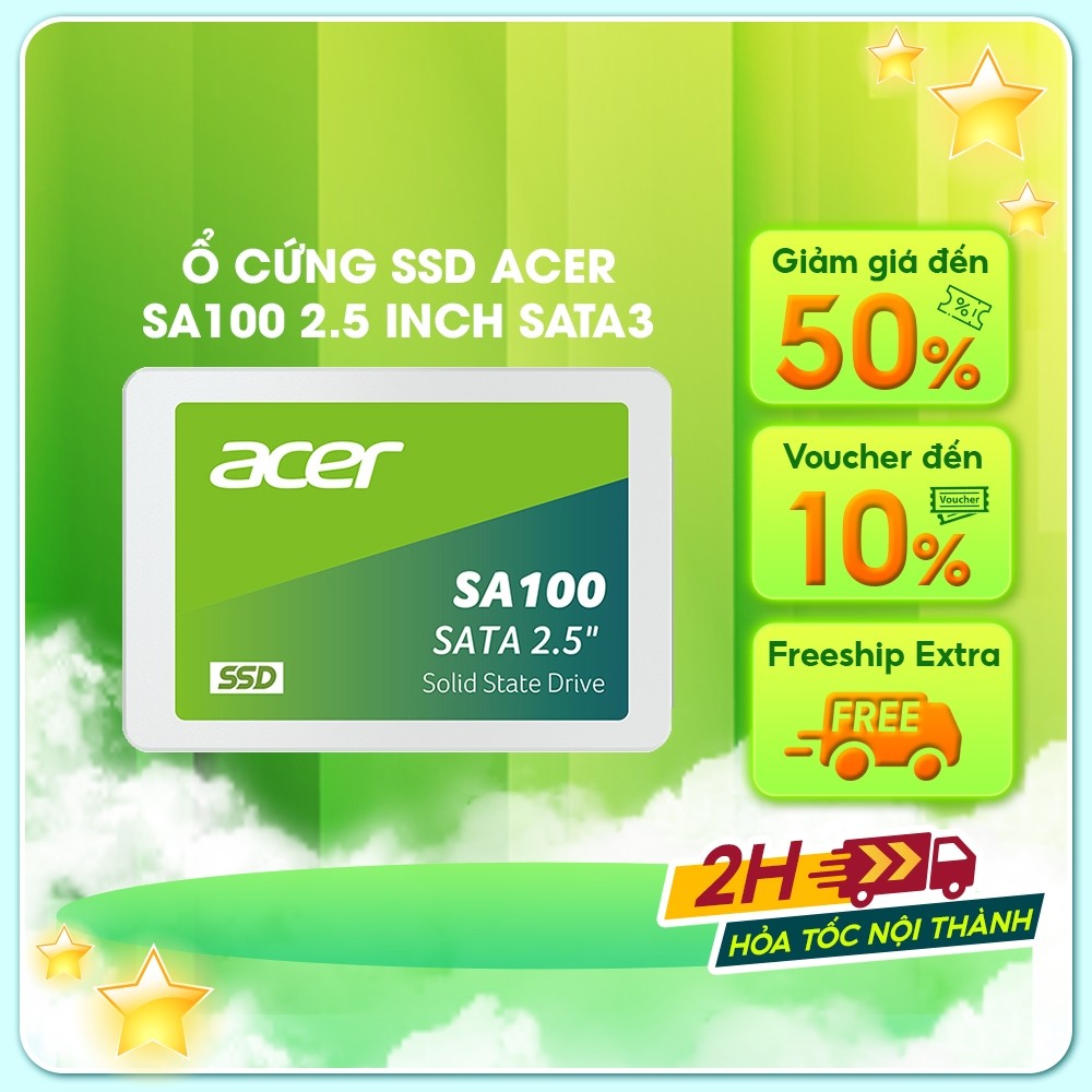Ổ cứng Acer SA100 2.5 inch có trọng lượng nhẹ, mỏng và nhỏ gọn. Mức tiêu thụ điện năng tối đa ở chế độ làm việc thấp hơn so với các ổ SSD SATA thông thường có cùng dung lượng.