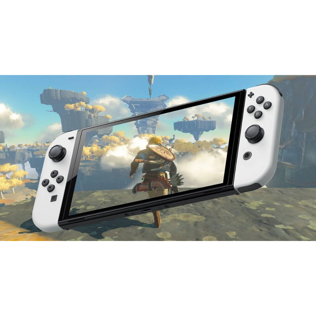 Nintendo Switch OLED Model - The Legend of Zelda: Tears of the Kingdom Edition. Máy có thiết kế đẹp mắt lấy cảm hứng từ tựa game mới nhất trong loạt trò chơi này, Tears of the Kingdom. Điểm nhấn của sản phẩm là chiếc dock được trang trí với biểu tượng Hylian Crest và các ký hiệu từ game có màu vàng tuyệt đẹp. Ngoài ra, Joy-Con controllers đi kèm với các ký hiệu và hoa văn màu xanh lá và vàng cổ điển vô cùng lạ mắt. Sản phẩm có màn hình OLED và âm thanh được cải thiện, tạo nên trải nghiệm sống động cho người chơi. Nintendo Switch OLED Model - The Legend of Zelda: Tears of the Kingdom Edition chắc chắn sẽ trở thành một sản phẩm sưu tập và một vật phẩm quý giá cho bất kỳ fan của Legend of Zelda. Đừng chần chừ, hãy sở hữu ngay phiên bản Nintendo Switch OLED Model - The Legend of Zelda: Tears of the Kingdom Edition và trải nghiệm những giờ phút giải trí đầy thú vị!
