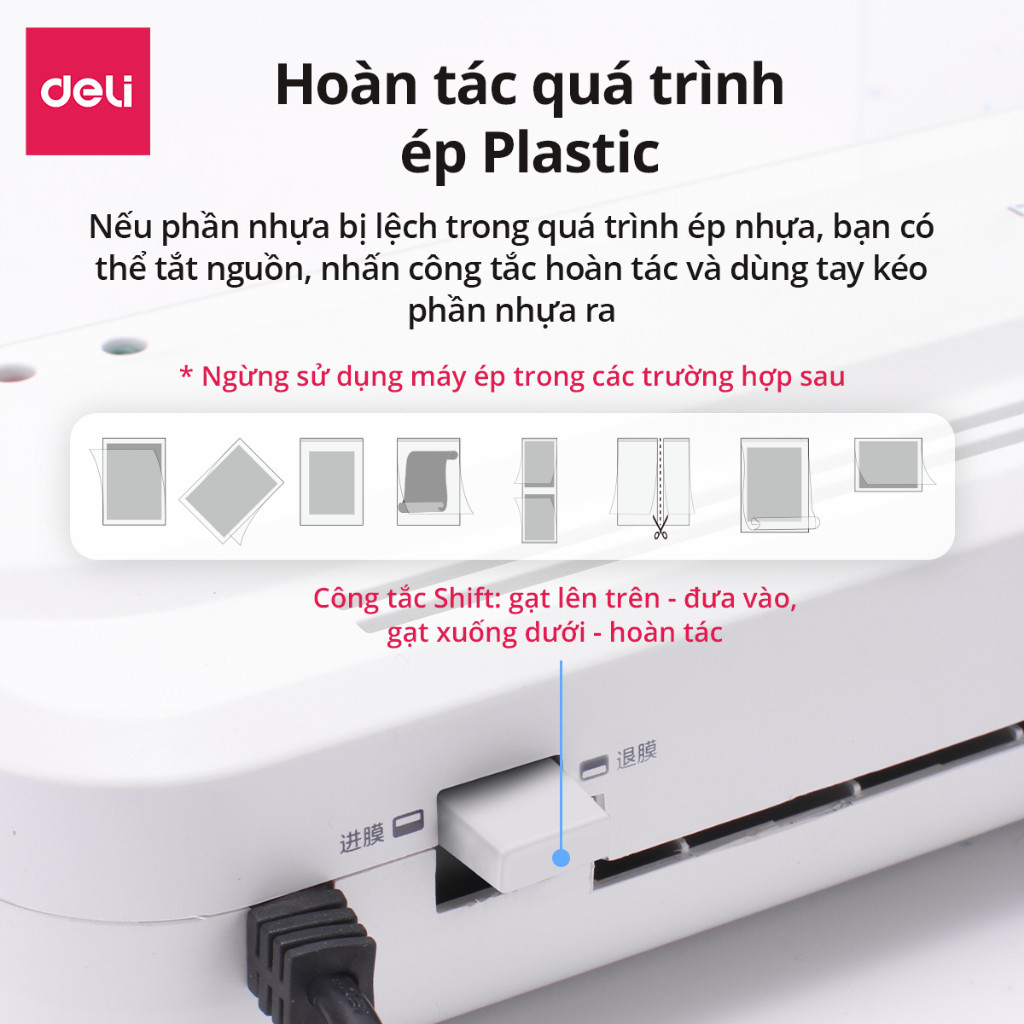 Máy Ép Nhiệt Plastic DELI Khổ A4 Chính Hãng – Máy Ép/Cán Màng Ảnh, Bảo Vệ Poster An Toàn Dễ Sử Dụng