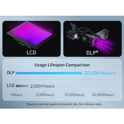 - Công nghệ màn chiếu DLP: DLP tốt hơn đáng kể so với máy in LCD do cách truyền ánh sáng UV khác nhau: