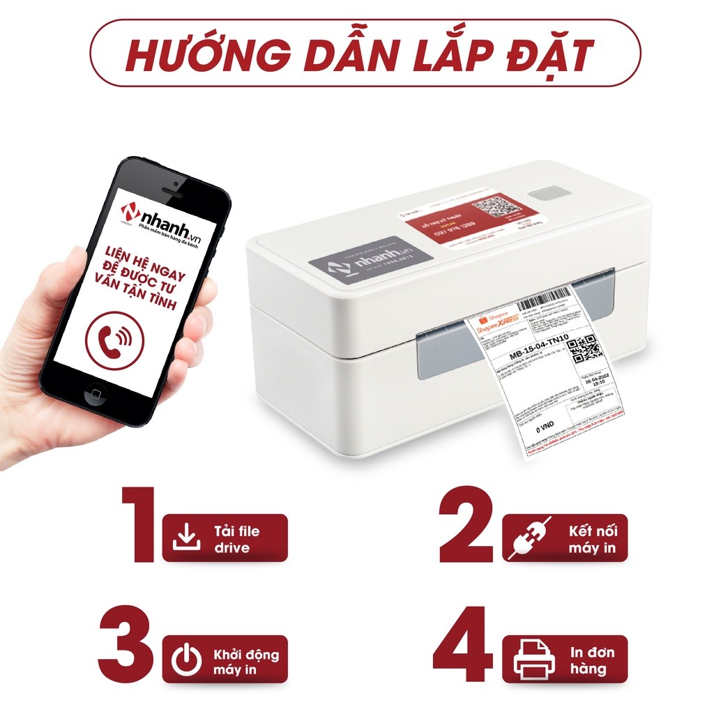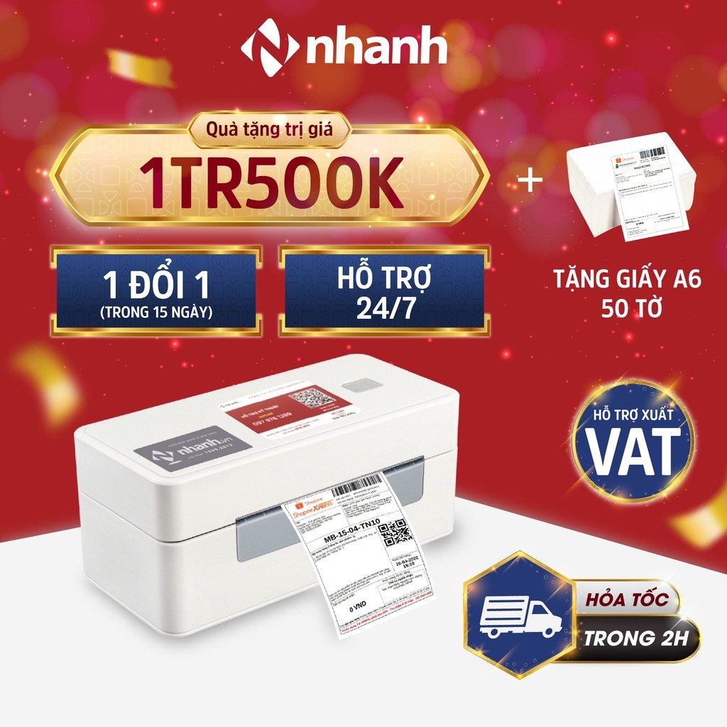 Máy in đơn hàng Nhanhvn NVN 36 in đơn hàng, phiếu gửi, minicode khổ giấy 100x150mm – BH 12 tháng