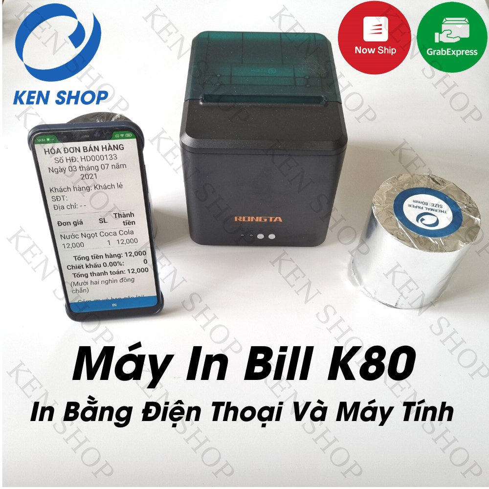 Máy in hóa đơn K80 Rongta LAN WIFI in Bill không dây từ điện thoại & máy tính PC dùng giấy 80mm có cắt giấy tự động