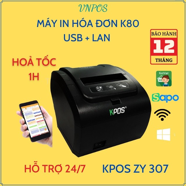 Máy in hoá đơn K80 Zy307 USB LAN in bill tính tiền POS từ các phần mềm bán hàng khổ giấy 80mm (Tặng phần mềm bán hàng)