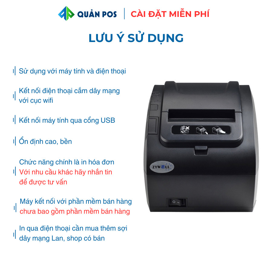 - Kết nối máy in với máy tính bằng cổng USB đối với máy ZY303