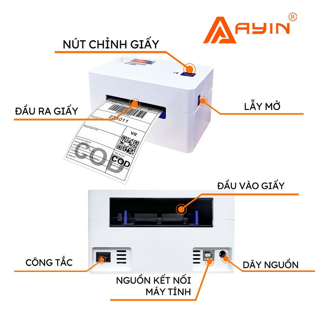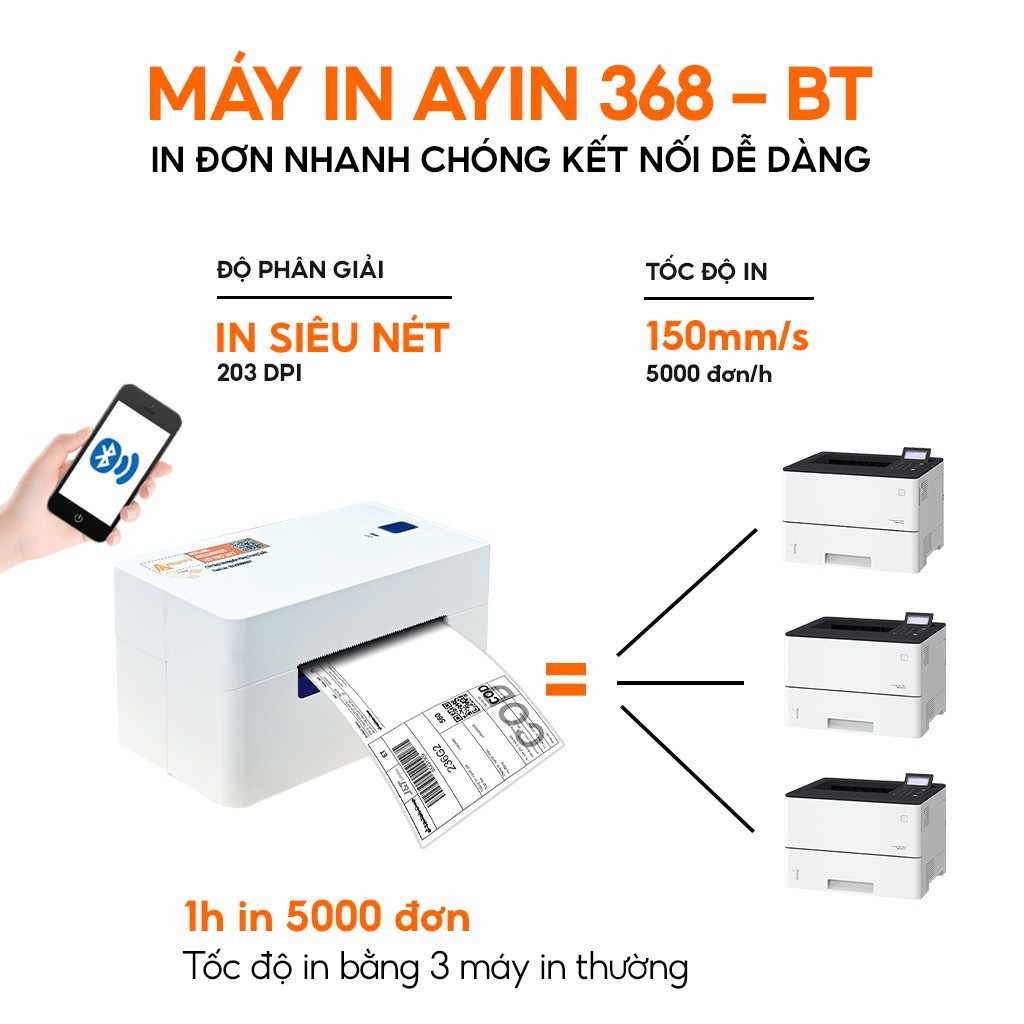 Máy in nhiệt AYIN 368 ,máy in đơn hàng,tem vận chuyển,mã vạch khổ A7