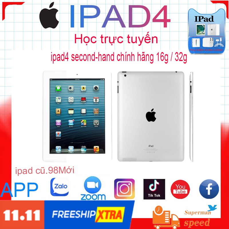 máy tính bảng i(p.ad)4 Chính Hãng Bản Wifi 16G/32G i(pa.d) cũ Quốc tế Máy tính bảng cũ giá rẻ Bảo hành 12 tháng Tablet