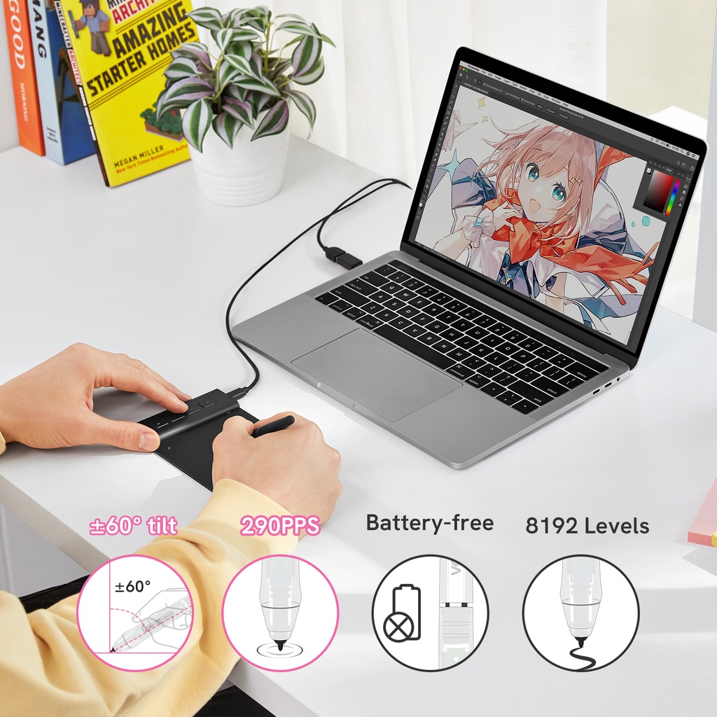 bảng vẽ kỹ thuật số Creator Pop VK430 hỗ trợ vẽ kỹ thuật số, vẽ, phác thảo, chữ ký điện tử, giảng dạy trực tuyến, công việc từ xa, chỉnh sửa ảnh... Sản phẩm thích hợp cho Windows 11/10/8/7, Mac OS 10.12 trở lên, Chrome OS 88 trở lên, Android 6.0 trở lên (trừ Samsung) với đầu nối OTG 【cần tự mua riêng】và Linux. Bạn có thể sử dụng trên các chương trình sáng tạo như Adobe Photoshop, Paint Tool SAI, minh họa, Rút lõi, Sơn Corel, sổ phác thảo, studio manga, clip paint studio...