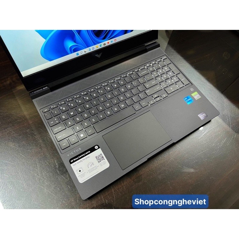 Khác với dòng Omen, HP Victus 15 sẽ có bàn phím đầy đủ số và chữ; thuận tiện sử dụng cho đa dạng tác vụ từ nhập liệu đến chơi game. Trải nghiệm gõ mà bàn phím này đem lại cũng là rất ổn, với hành trình vừa đủ đi kèm độ phản hồi tương đối tốt. Có điều thay vì LED RGB như các sản phẩm gaming khác, đèn nền của HP Victus 15 sẽ chỉ ở dạng đơn sắc mà thôi. Vì vậy nên tính thẩm mỹ của sản phẩm sẽ phần nào hạn chế, nhưng bù lại thì độ sáng đèn lại đủ nhìn, tiện dùng.