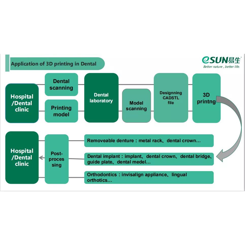 _Nhựa khuôn LCD chuyên nghiệp: Được thiết kế đặc biệt cho nguồn sáng LED để đạt được chất lượng in tốt hơn. eSUN Dental Modeling Resin tương thích với hầu hết các máy in 3D LCD để tạo mô hình nha khoa.