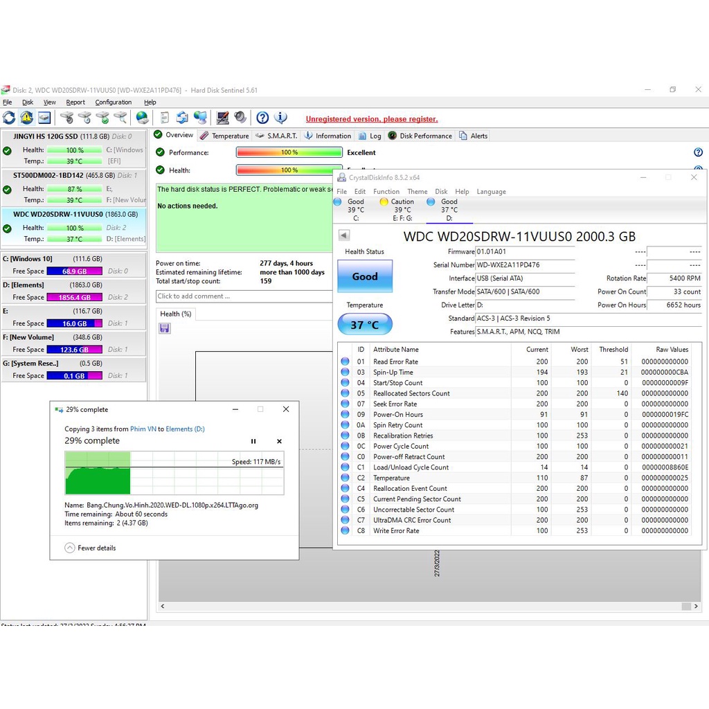 Dư ít Ổ cứng Elements 2TB Bán lại cho khách cần. Ổ cứng Elements 2TB BU6Y0020BBK ổ cứng di động 2.5 inch gắn ngoài với thiết kế đơn giản, nhỏ gọn, kết nối cổng USB 3.0 tốc độ cao sử dụng cho máy tính pc, laptop, máy mac, đầu HD, smart tivi, đầu karaoke... Tình trạng: Hàng đã qua sử dụng, bh chính hãng 2024. Shop đã test kỹ, tốc độ ổn định, cơ êm, ổ mới cũng chỉ đc như vậy.