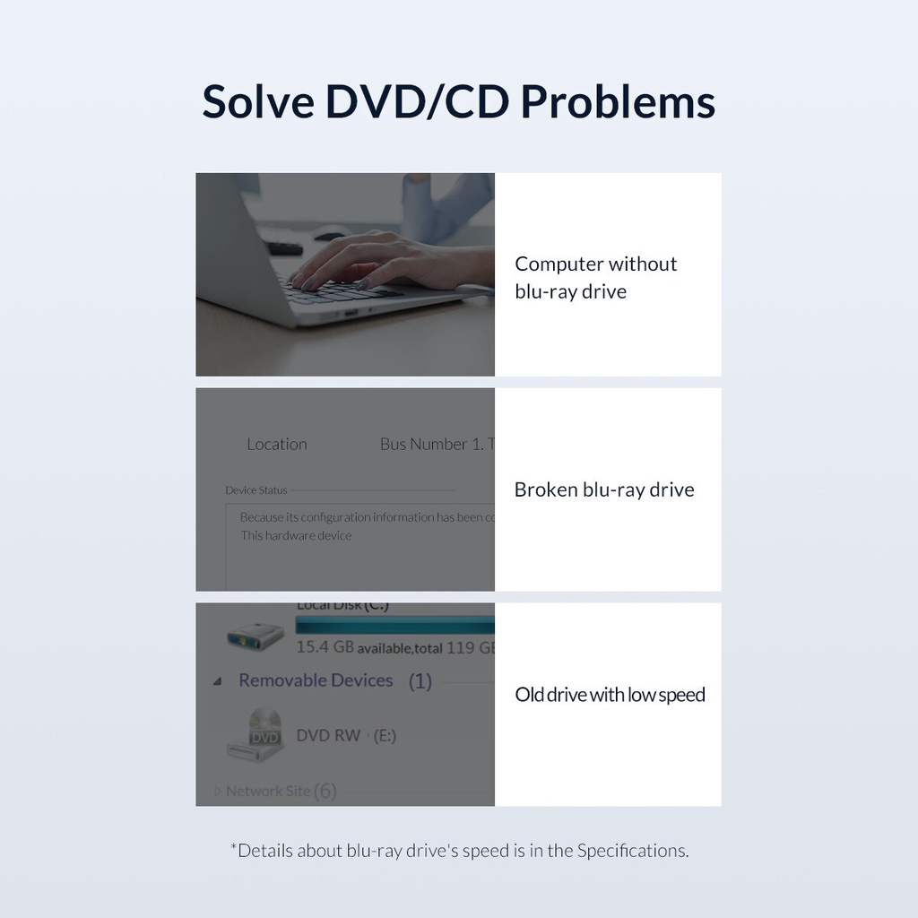 Orico Ổ Đĩa Ngoài Usb 3.0 hub type-c cd Hỗ Trợ Thẻ tf sd Cho Windows 7 / 8 / 10 (xd008)