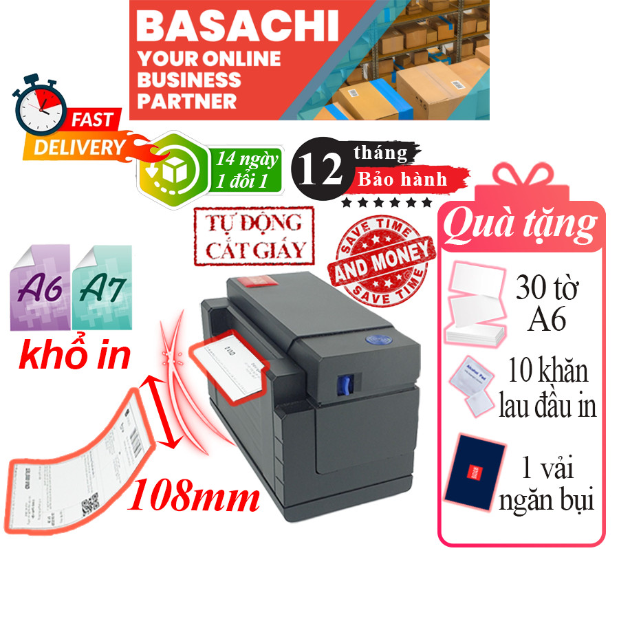 🌏 Máy in đơn hàng sàn thương mại điện tử BASACHI có tính năng cắt giấy
