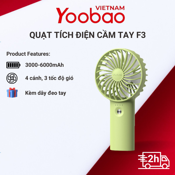 Quạt sạc tích điện mini cầm tay / đặt bàn YOOBAO F3 3000 mAh / 6000 mAh có thể chạy 15 giờ liên tục nhỏ gọn, có dây cầm