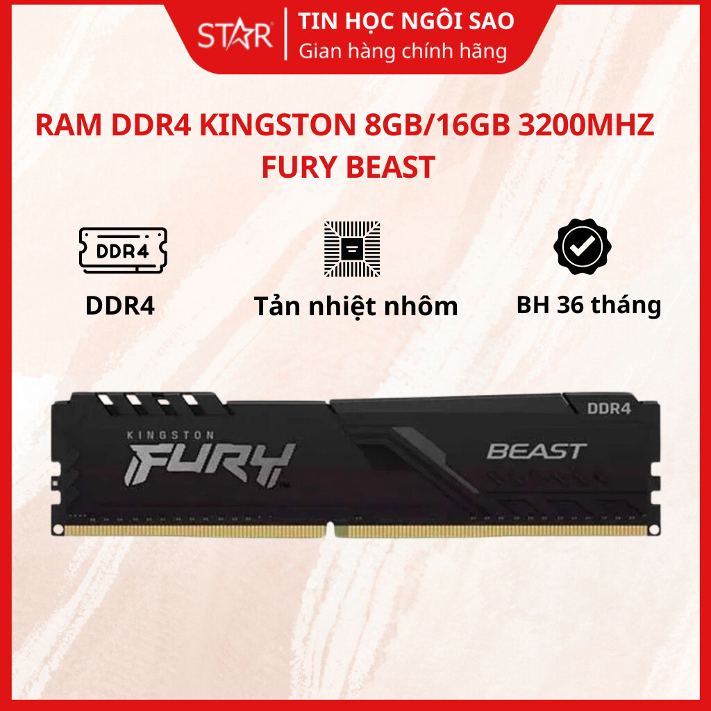 Ram DDR4 Kingston 16GB 3200Mhz Fury Beast