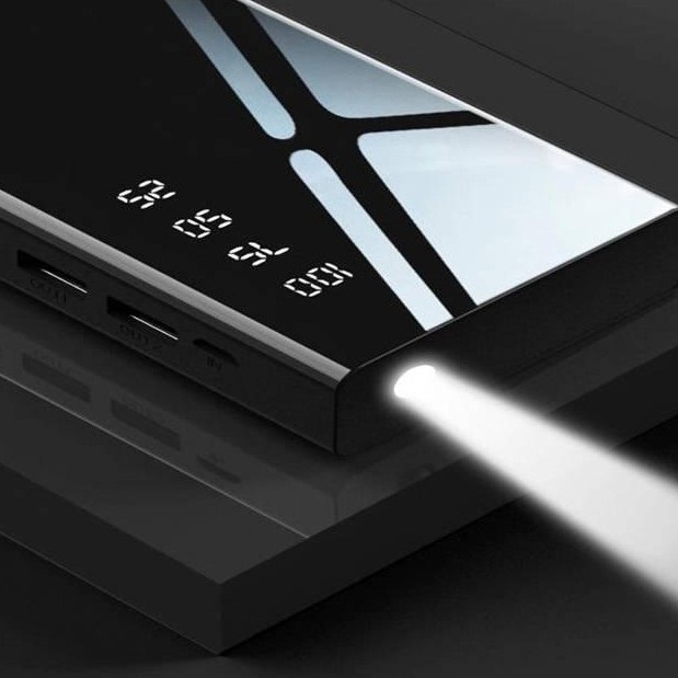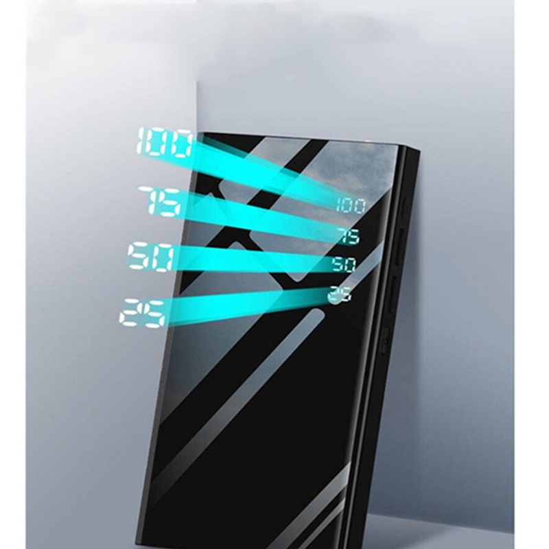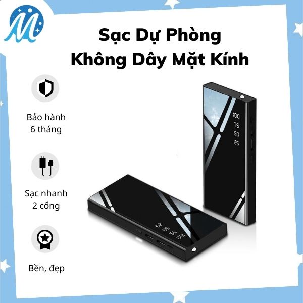Sạc Dự Phòng Không Dây Mặt Kính [ BH 6 Tháng ] Sạc Nhanh 2 Cổng USB An Toàn, Tiện Lợi, Hiển Thị % Pin, Có Đèn, Màu Đen