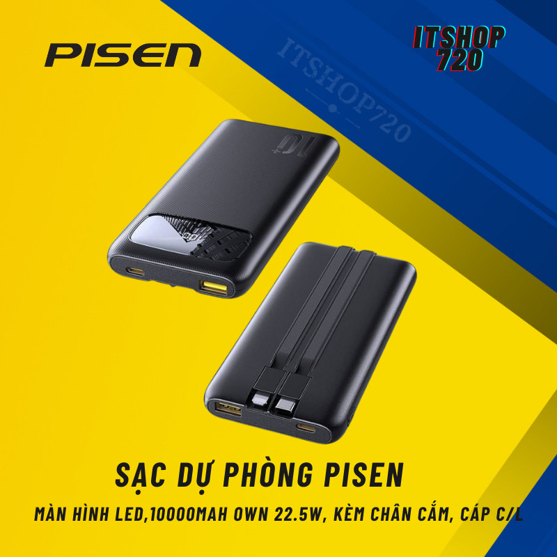 Sạc Dự Phòng PISEN POWER BANK 20W/22,5W Fast Charging 10000mAh, có đèn Led hiển thị, USB PD QC