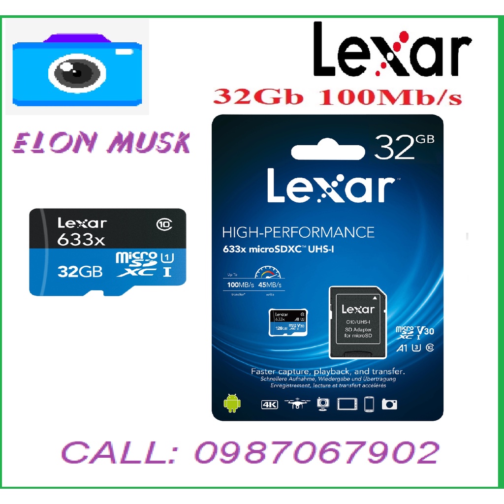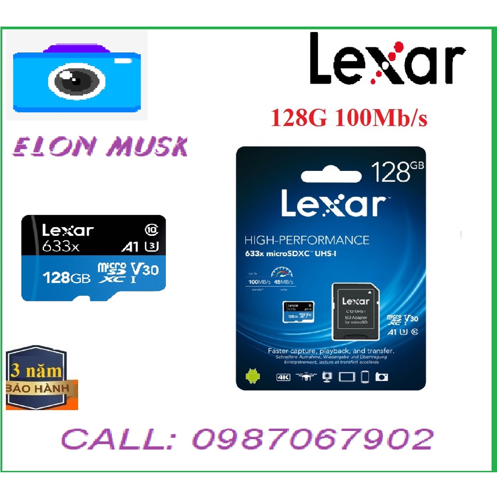 Thẻ Nhớ Lexar 32Gb,Lexar 64Gb, Lexar 128b ,Lexar 256Gb Class 10 tốc độ 100Mb/s Thẻ Nhớ Camera- Hàng Chính Hãng