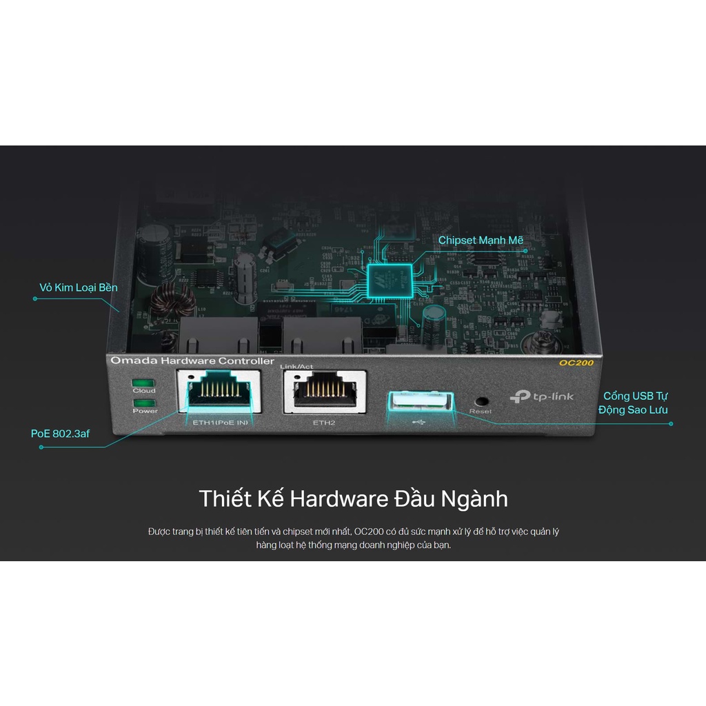- Omada Hardware OC200 cung cấp quản lý tập trung cho toàn bộ mạng Omada. Theo dõi số liệu thống kê trong thời gian thực, phân tích đồ họa về lưu lượng mạng, tạo captive portal, nâng cấp và khởi động lại hệ thống của bạn và dễ dàng mở rộng mạng để thúc đẩy doanh nghiệp của bạn.