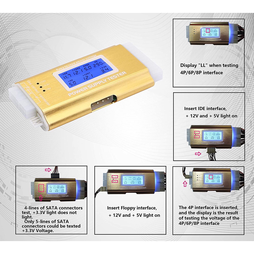 ATX Power Supply Tester - Máy kiểm tra nguồn điện là một loại thiết bị kiểm tra nguồn điện với nhiều chức năng khác nhau, máy kiểm tra ATX, BTX và ITX.