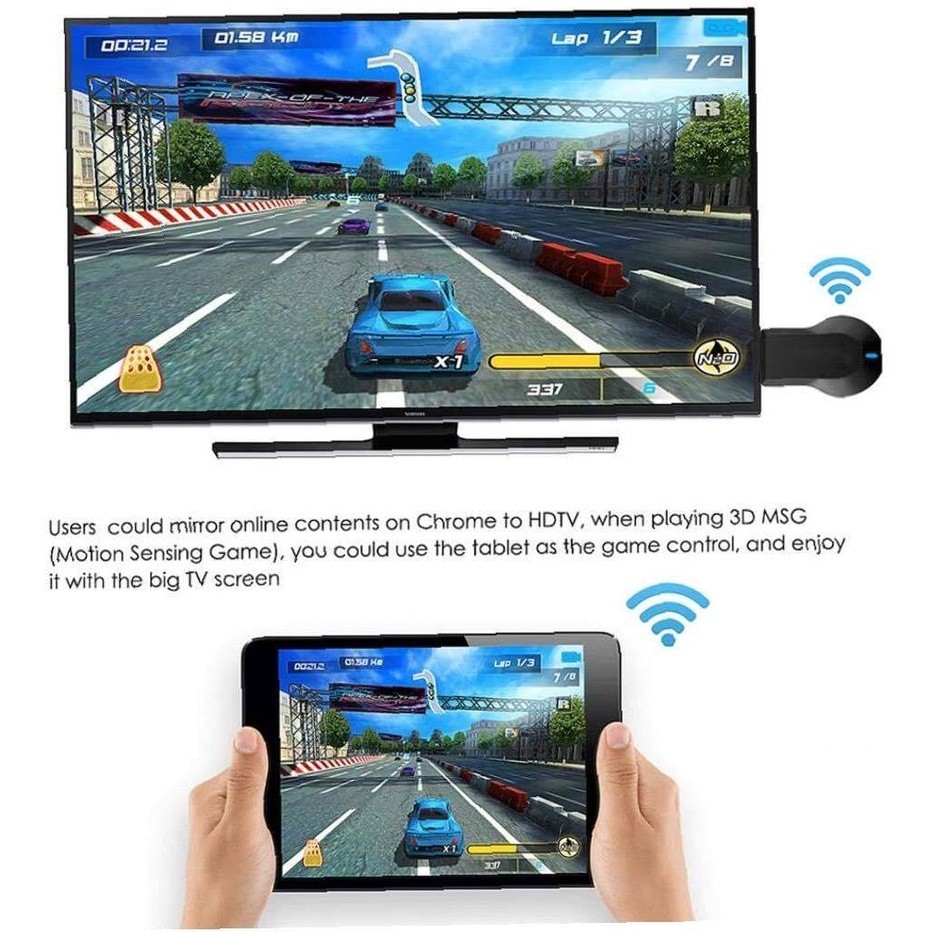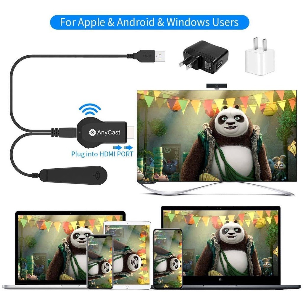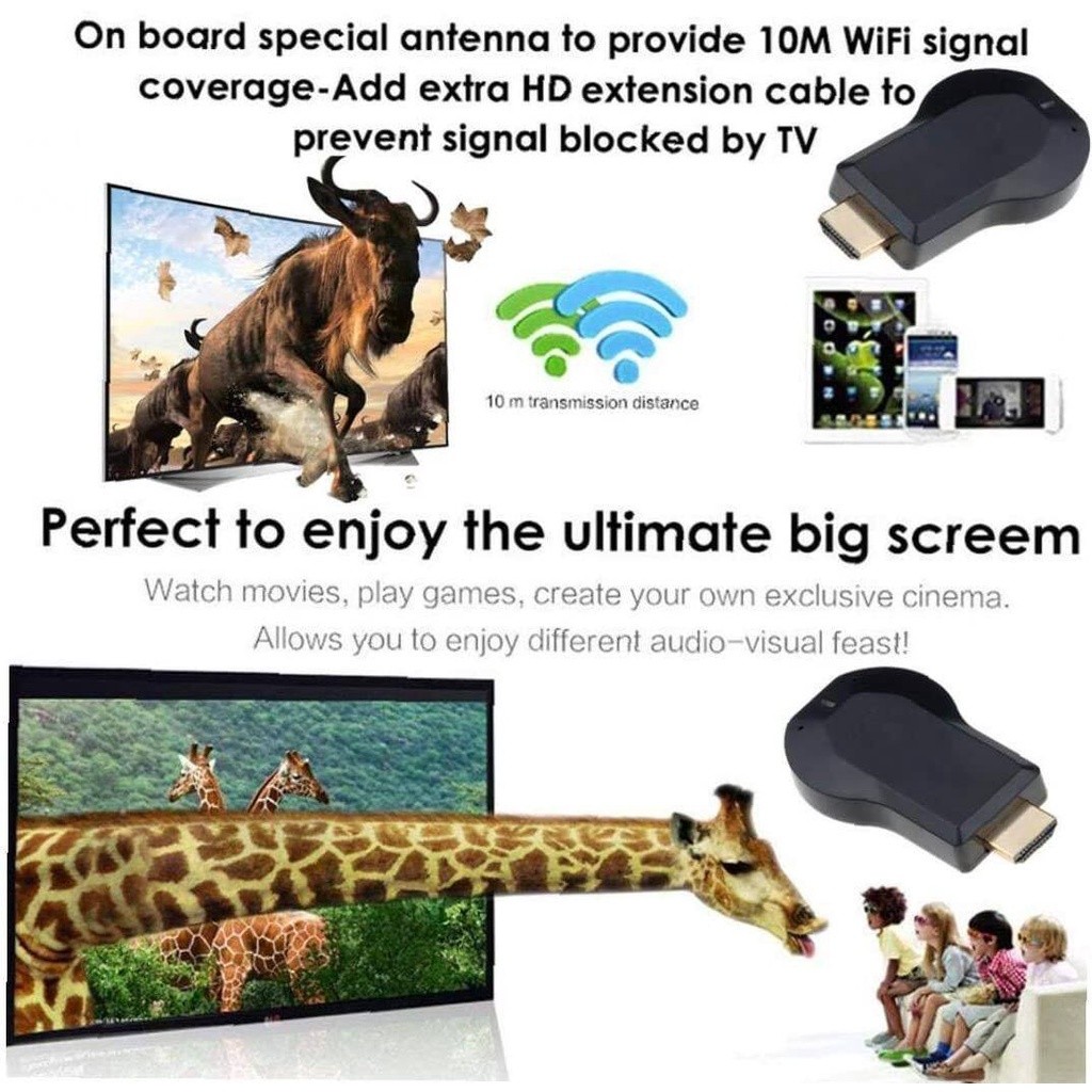 Cho phép bạn kết nối màn hình điện thoại di động của bạn. Android / iPhone Tablet hoặc Notebook / PC MacBook trên màn hình TV, máy chiếu hoặc thiết bị hiển thị có đầu nối HDMI ngay lập tức qua tín hiệu WiFi.