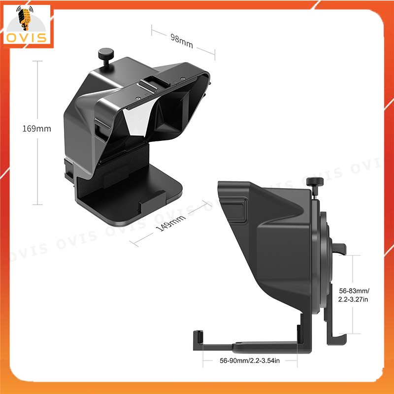 - Teleprompter RT02 có đế gắn cold shoe và lỗ ren 1/4 inch, cho phép gắn các phụ kiện bên ngoài như đèn, micrô, giá đỡ để bàn và chân máy