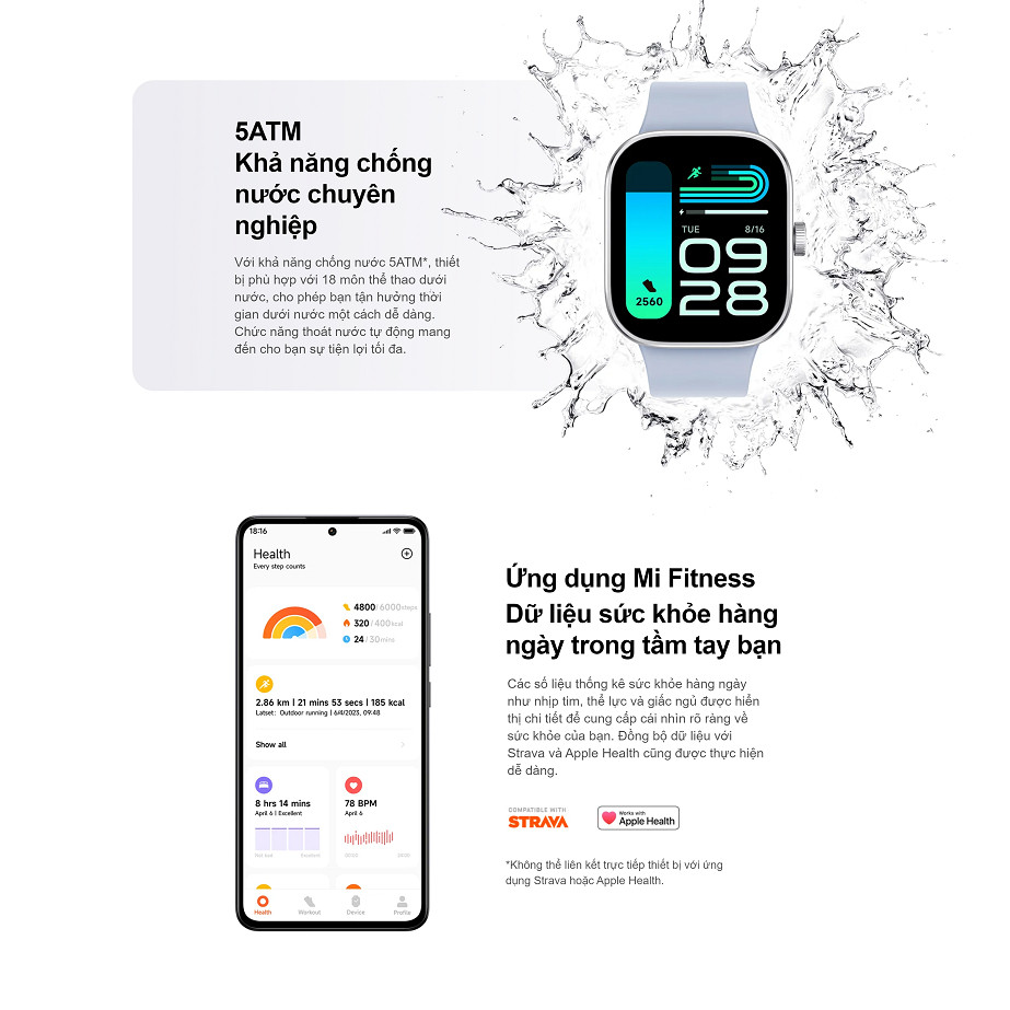 👉Redmi Smart Band Pro hỗ trợ các ứng dụng như Strava và Apple Health, có thể đo mức độ căng thẳng và cung cấp chức năng theo dõi kinh nguyệt cho chị em phụ nữ. Vòng đeo cũng có tính năng theo dõi giấc ngủ nhờ cảm biến đo nhịp tim 24/7, cũng như đo nồng độ oxy trong máu nhờ SpO2.
